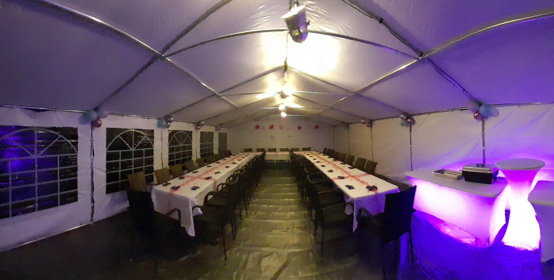 Nově nabízíme ke kryté produkci profi stan 6x12m, včetně mobiliáře - na malé firemní akce, večírky, svatby. Kapacita cca. 150 stojících, nebo 80 (50 + kapela) sedících hostů. Stan zapůjčujeme i samostatně, včetně montáže a demontáže. Jako příjemnou nadstavbu máme i horkovzdušné naftové topení pro použití stanu od jara až do podzimu. Umíme nabídnout i variantu 6x8m (96 stojících, 64 sedících hostů).
